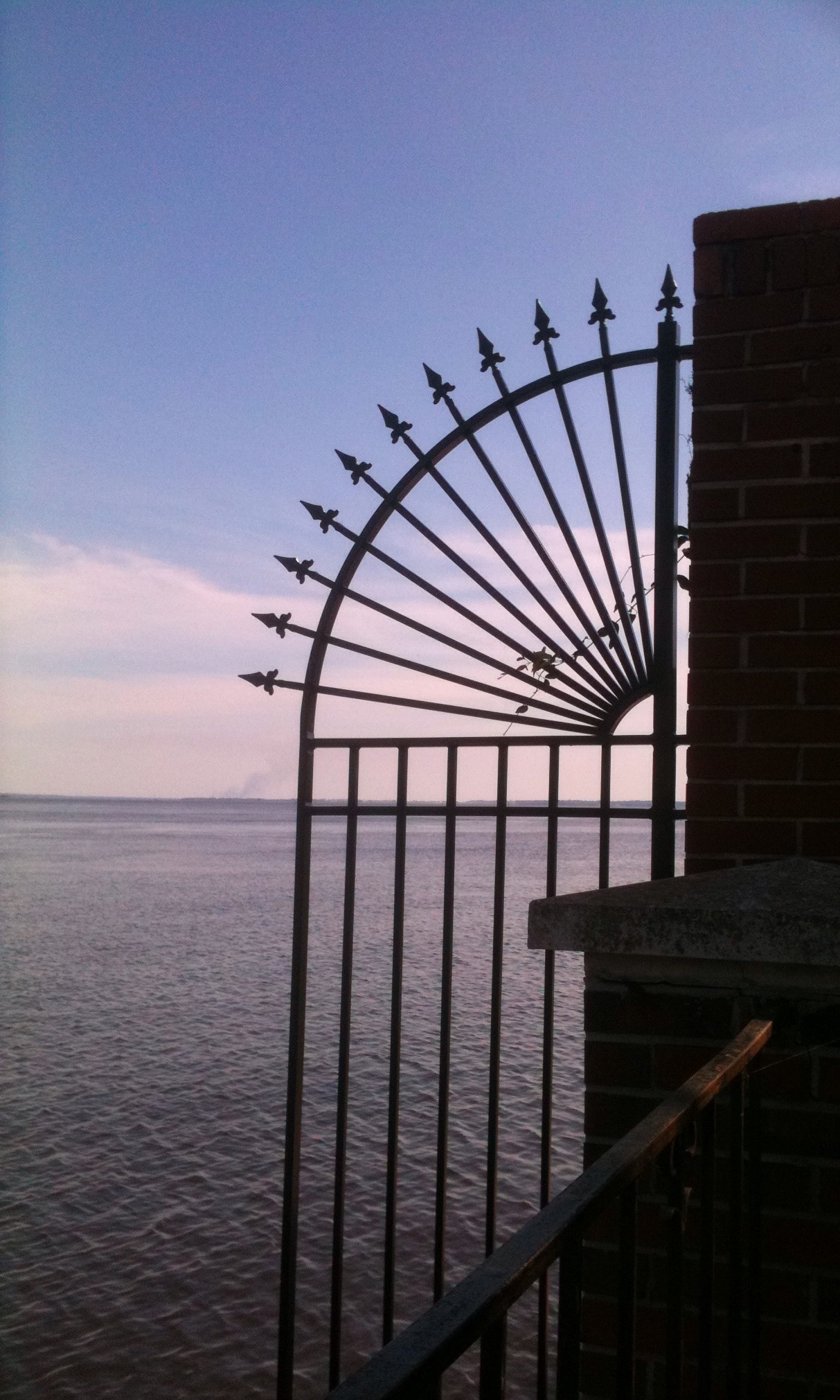 Difficult to reach and see from the public garden it adorns, this iron fan greets those who make a wet approach, marking the start of stories waiting to unfold.